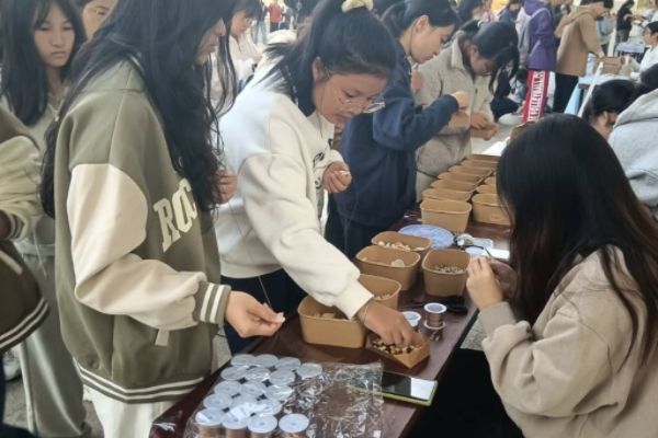 江中新闻网讯(通讯员 罗海彤 戴析)2025年11月2日,江西中医药大学指爱手语协会在体育馆外开展“自然造物,指尖魔法”创意市集活动。活动设置手工区、绘画区、手语区、打卡区四大板块。手工区中,同学们用贝壳和鹅卵石串手链、编挂饰,将自然材料转化为创意宝藏;绘画区里,大家在气球、石头上自由创作,让普通物件变身专属艺术品;手语区中,参与者轻松学会“我爱江西中医药大学”等暖心手语;打卡区则为大家提供了与作品美拍的场景,出片率满满。此次活动旨在丰富校园生活,让同学们在动手实践中释放创意,感受自然之美与手语文化的温暖,为校园生活增添了创意与温度。