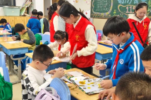 江中新闻网讯(通讯员 明清怡 王安琪)2025年10月30日,中医药爱好者协会走进南昌市复兴外国语学校,在六二班开展“馨香本草入校园,童心巧手制标本”活动。