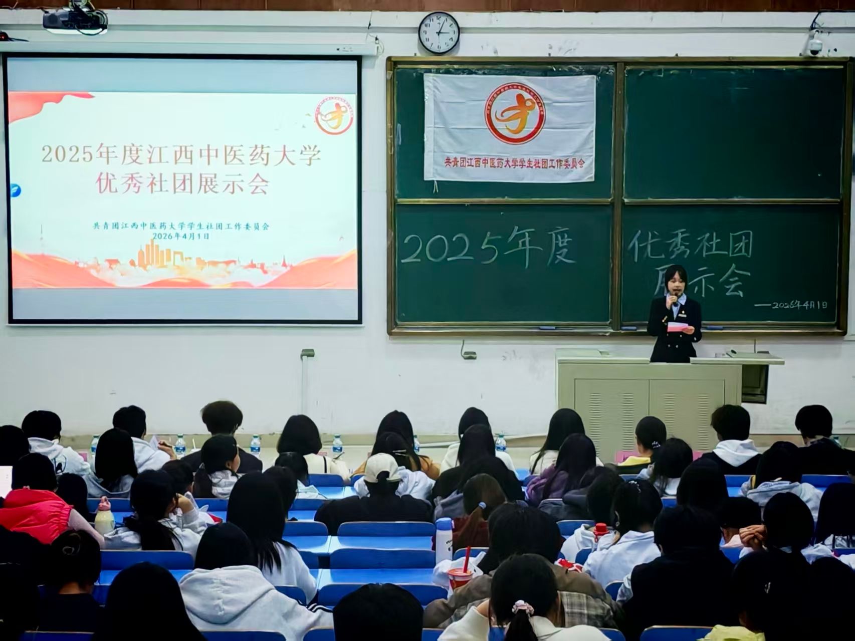 (通讯员 吴静怡 吴婷婷)2026年4月1日,江西中医药大学2025年度优秀学生社团展示会在知行楼T4教室顺利举办。活动集中展示了八个优秀学生社团的年度成果,各社团通过PPT汇报工作亮点、反思工作短板,并详细规划了下一阶段发展方向。本次展示会为各社团搭建了交流互鉴、展示风采的平台,充分展现了江中学子积极向上的精神风貌,进一步凝聚社团力量,丰富校园文化。今后,学校将持续推动学生社团高质量发展,引导青年学子在实践中成长成才,绽放青春光彩。
