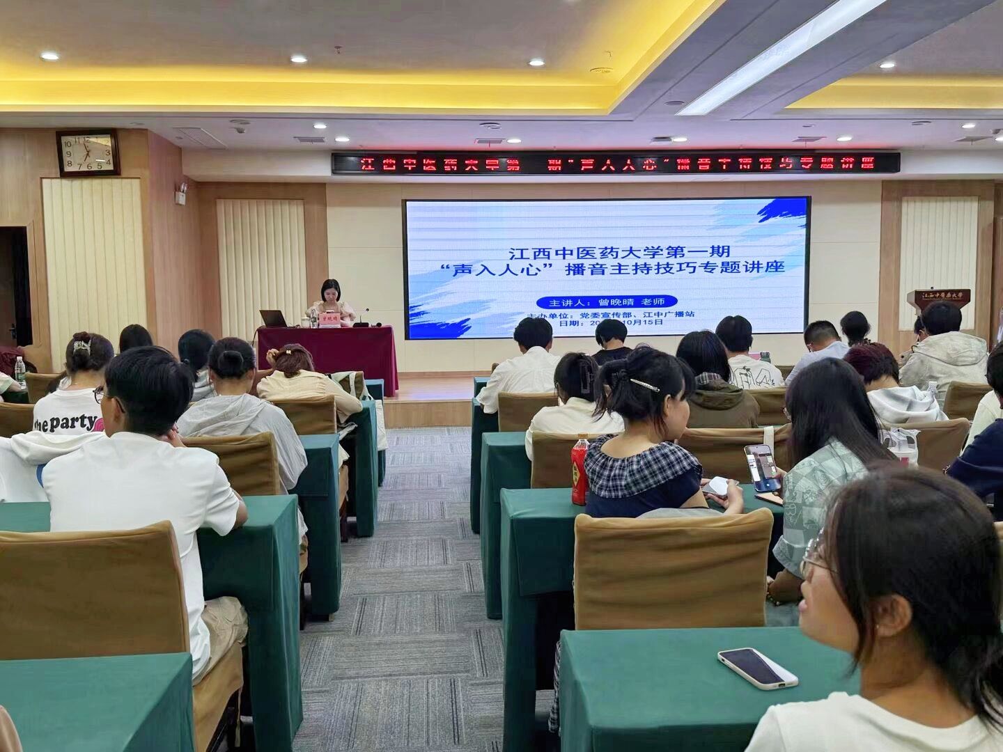 江中新闻网讯(通讯员 戴析 周悦)2025年10月15日,江西中医药大学首期“声入人心”播音主持技巧讲座在得月楼第一会议室举行。